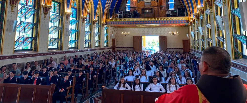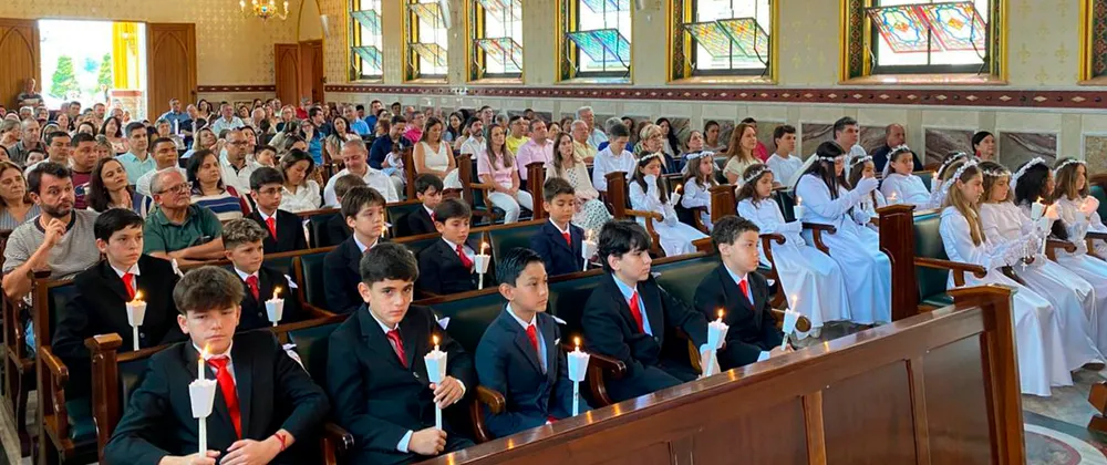 Nas duas cerimônias a igreja estava lotada, e um dos detalhes que mais chamou a atenção dos presentes foi a postura séria e compenetrada dos catequizandos ao receberem Nosso Senhor Jesus Cristo pela primeira vez.