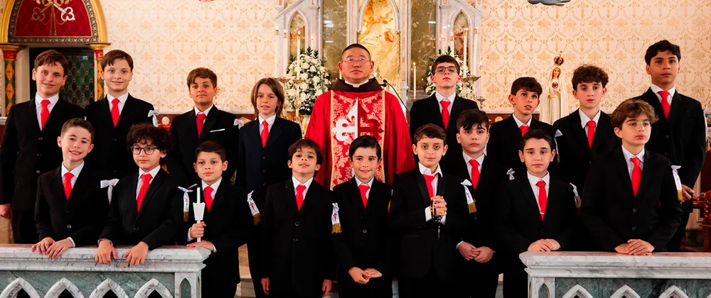 A primeira turma, composta por vinte e oito crianças, recebeu o Sacramento na Missa Solene celebrada pelo Pe. Roberto Takeshi, EP, na Igreja Nossa Senhora do Perpétuo Socorro, no dia 22 de novembro.