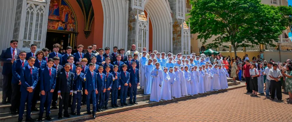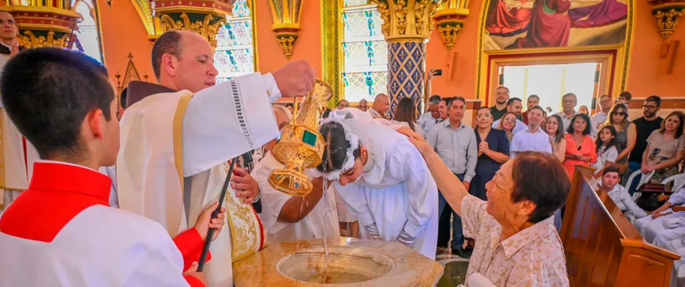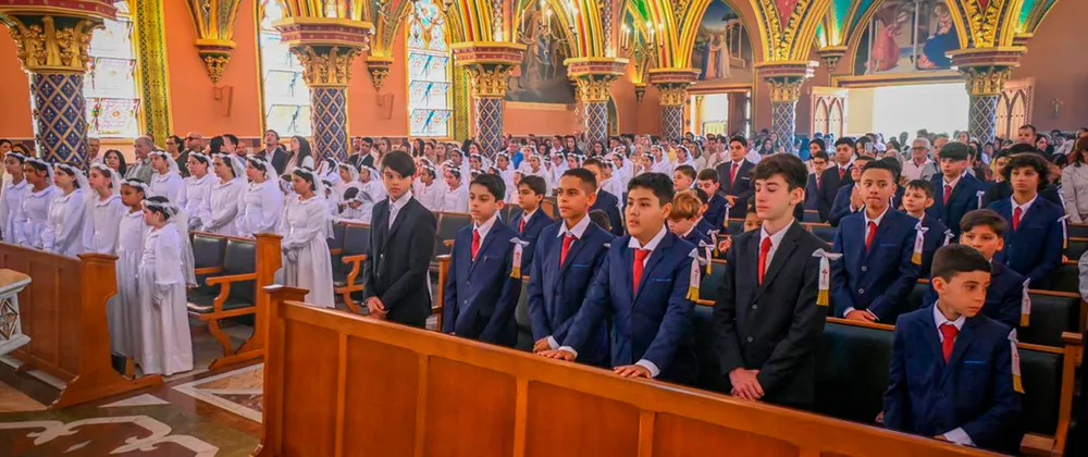 A Primeira Comunhão é muito marcante na vida de uma criança, e se torna ainda mais inesquecível quando acontece concomitante ao momento do Batismo, que nos transforma em templos do Espírito Santo.