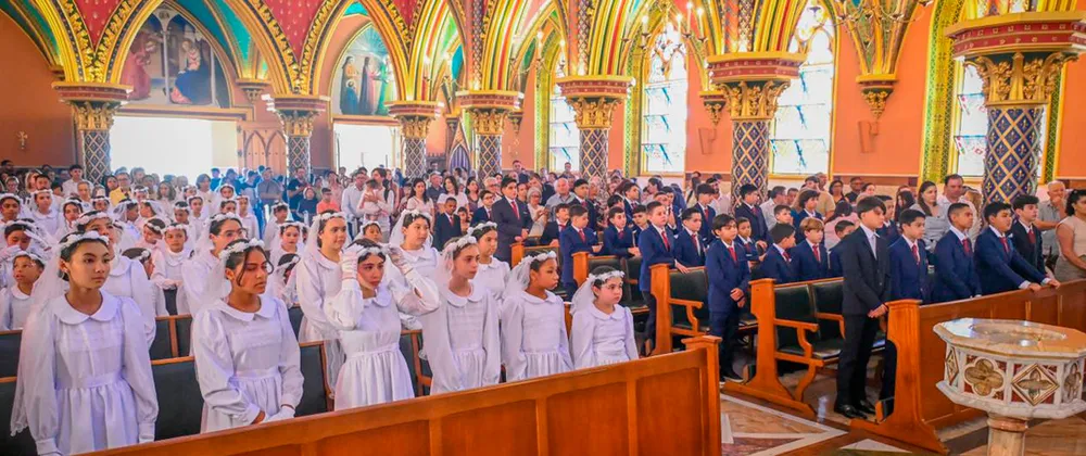 A alegria e sacralidade com que os meninos, muito sóbrios e elegantes em seus terninhos azuis, e as meninas, vestidas como noivinhas, com longos vestidos brancos, guirlandas e véus sobre os cabelos, receberam Jesus Eucarístico pela primeira vez emocionaram a todos os presentes.