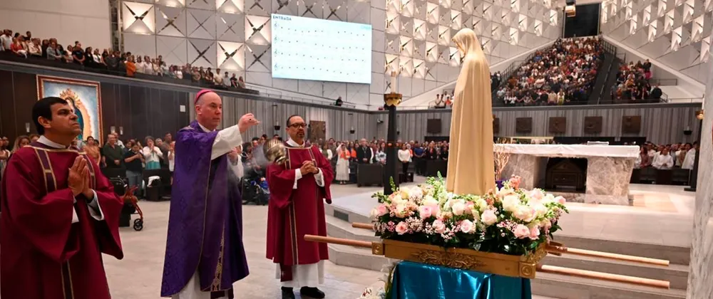 As imagens do evento revelam a grandiosidade da assembleia e a proximidade dos fiéis com Nossa Senhora, em um ambiente que une a modernidade arquitetônica da catedral ao fervor tradicional da fé católica.