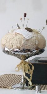 No fim do Império e no começo da República, as senhoras, além de outros trabalhos domésticos, costuravam e usavam uma almofadazinha para prender alfinetes.