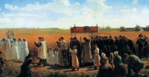 Procissão e bênção com o Santíssimo pelos campos de Artois, interior da França