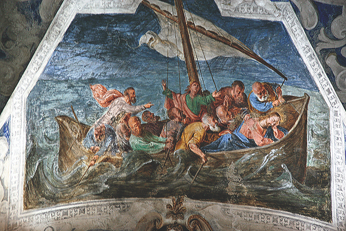 Numa tarde de mar encapelado, Nosso Senhor está adormecido na popa da dura embarcação, em meio à procela, recostado sobre uma almofada (cf. Mc 4, 35-38).