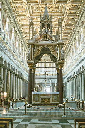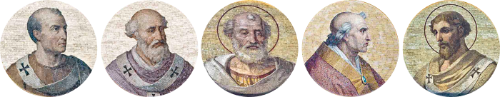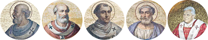No muro interior das naves e do transepto encontra-se a famosa coleção das efígies de todos os pontífices, desde São Pedro até Bento XVI.