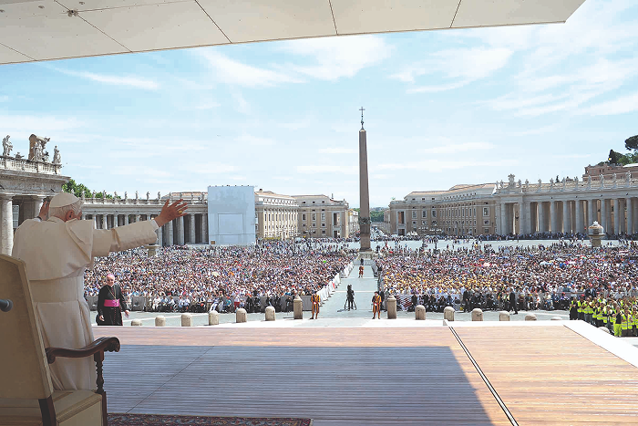 Também eu, desde o primeiro momento de minha eleição como Sucessor de São Pedro, senti-me sempre amparado pela vossa oração, pela oração da Igreja, sobretudo nos momentos mais difíceis. Agradeço de todo coração.