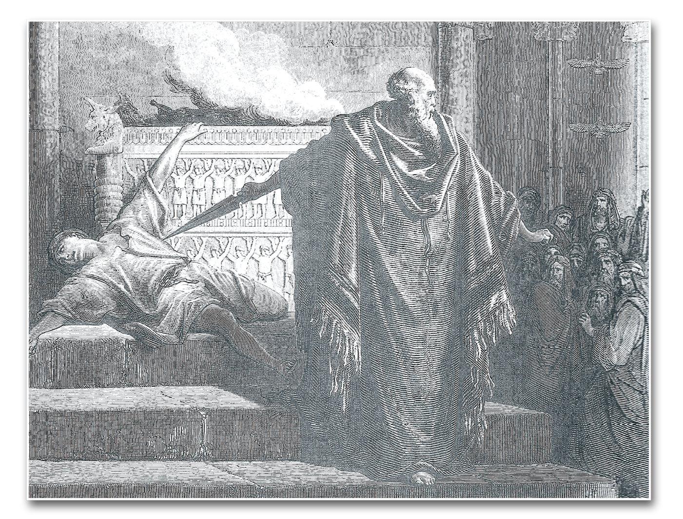 Num ímpeto de justa cólera arrojou-se e matou o homem sobre o altar” (1Mac 2, 24). Tirou também a vida do oficial do rei incumbido de obrigá-los à apostasia, conclamando para junto de si os que queriam resistir, por amor a Deus, até o fim.