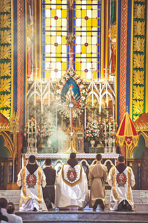 Expressão ímpar da benignidade de Nosso Senhor Jesus Cristo na Eucaristia é o fato de podermos adorá-Lo exposto no ostensório.
