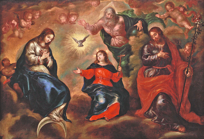 Pois, além de tudo quanto acima dissemos a este respeito, vários insignes teólogos ensinam que Ela teve, desde o primeiro momento de sua vida, um conhecimento da Santíssima Trindade mais claro do que aquele dado aos Anjos e ao primeiro homem, em sua santidade original.