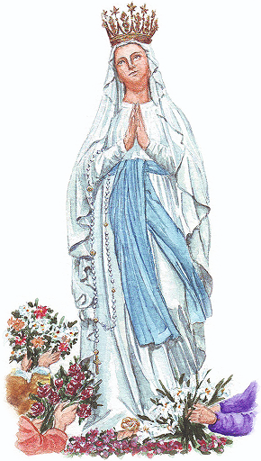 E com as amiguinhas depositou aos pés da Virgem de Lourdes suas listas douradas e a carta que escreveram, repleta de manifestações de carinho por Ela e por seu Divino Filho, adornadas pelas esplendorosas flores celestiais que o Anjo lhe dera.