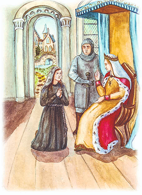 Um dia, durante as audiências, ouviu-se ecoar pelo castelo gritos desesperados, implorando misericórdia. Era uma mulher acorrentada, com os cabelos desgrenhados e ferida, pertencente a uma quadrilha de salteadores.