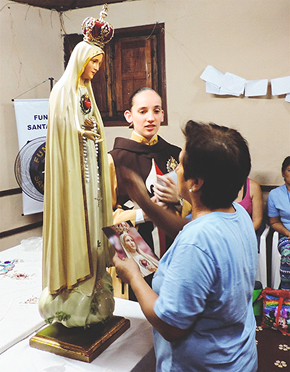 Percorrendo de norte a sul o nosso vasto Brasil, vinte duplas missionárias do setor feminino visitam diariamente cerca de cento e cinquenta residências, levando consigo um oratório de Nossa Senhora de Fátima.