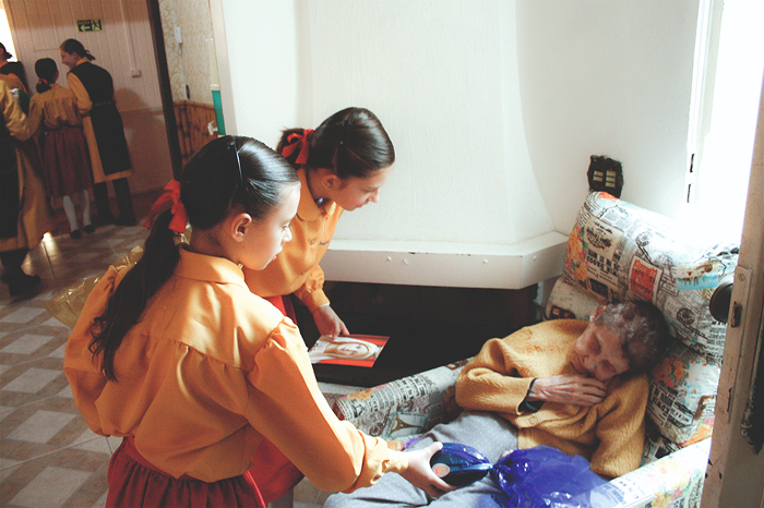 Nas visitas feitas pelo setor feminino aos asilos e casas de repouso dá-se um curioso contraste: as mais ativas evangelizadoras costumam ser as estudantes mais jovens.