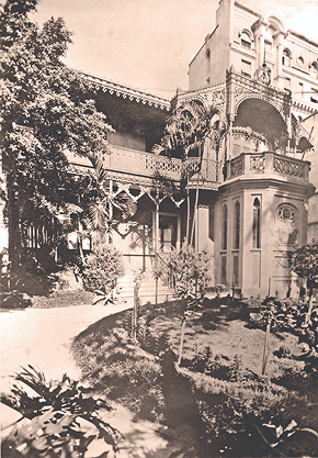 A escolinha ficava num terreno elevado e, ao entrar no jardim, subíamos por uma rampa muito íngreme, ao longo da qual havia umas figuras de gesso em relevo, pintadas com muita ingenuidade, representando a Paixão de Nosso Senhor.