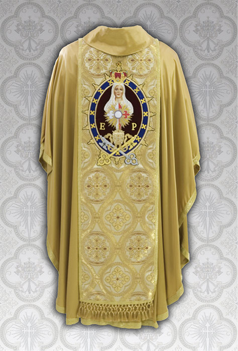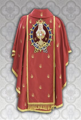 Por último, coloca a casula, que completa a indumentária própria à celebração da Santa Missa. A oração para vesti-la também faz referência ao jugo do Senhor, mas lembrando o quanto este é leve e suave para quem o carrega com dignidade: “Ó Senhor, Vós que dissestes: ‘Meu jugo é suave e Meu peso é leve’, fazei que eu seja capaz de levar esta vestimenta dignamente, para alcançar a Vossa graça”.