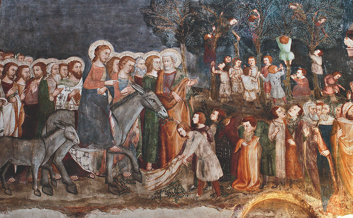 Quando já se podia divisar o Templo – o que, segundo indicação precisa de São Lucas, corresponde a “perto da descida do Monte das Oliveiras” –, a multitudinária procissão irrompeu em exclamações e brados de alegria: “Bendito o Rei, que vem em nome do Senhor! Paz no Céu e glória nas alturas!”.