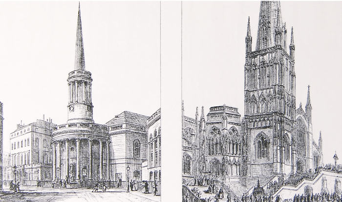 O descaso pelas joias góticas do país remontava aos tempos de Henrique VIII, quando “uma melancólica série de destruições e mutilações” demoliu inteiramente ou despojou de sua beleza igrejas e mosteiros católicos.[3]