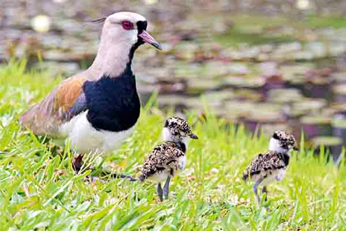 O curioso trio permaneceu quase imóvel por alguns minutos, suficientes para quem o observava perceber que se tratava de uma família de Vanellus chilensis, os populares quero-queros, assim denominados pela onomatopeia do seu estridente grito.
