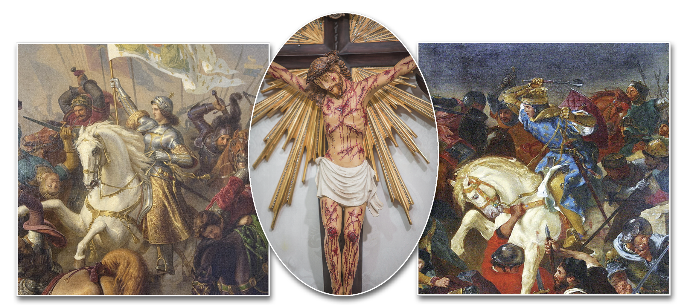 Acaso Nossa Senhora Se mostra em algo rebaixada ao ser representada esmagando a cabeça da serpente? Será que Santa Joana d’Arc refulgiria da mesma forma se não tivesse o mérito de haver resistido na sua fé em meio a uma corja de traidores?