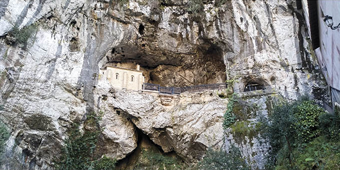Situada no interior do Monte Auseva, Covadonga era uma espécie de caverna natural e espaçosa. Segundo tradições antigas, o lugar era dedicado a Nossa Senhora desde antes da invasão dos árabes, e é possível que seu nome seja uma variação da expressão latina cova dominica, que significa “cova da Senhora”.