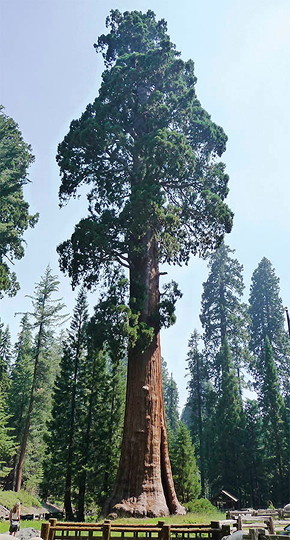 A Sequoiadendron giganteum, conhecida como sequoia-gigante, cuja longevidade se estende por até três milênios e da qual recentemente se encontrou um exemplar com a impressionante estatura de cento e cinco metros.[1]