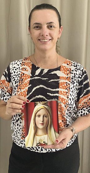 Eu não tinha dinheiro para pedreiro, para nada. Mal conseguia pagar as contas! Estava atolada em dívidas. Então, liguei desesperada para minha mãe: “Mãe, a senhora me disse para rezar, eu rezei e deu tudo errado, piorou a situação!” Ela respondeu: “Imagine! Se ela não ia ajudar, também não iria fazer-lhe mal! Vamos confiar! Você não está rezando? Confie!”