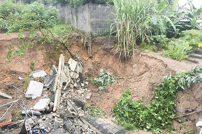 Chovia muito, muito na minha cidade, caía uma tromba d’água. De repente, ouvi um barulho enorme na minha casa. Corri para ver: havia caído o muro de arrimo do meu quintal. Restavam só escombros.