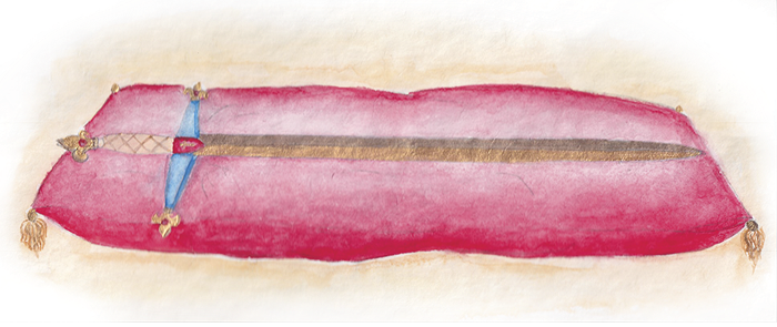 — Desejo vos oferecer este inquebrantável gládio de ouro, símbolo de vossa alma guerreira. Quando despontar o dia em que realizareis façanhas heroicas em defesa da Igreja e do reino, peço-vos que utilizeis esta espada preparada especialmente para vós.