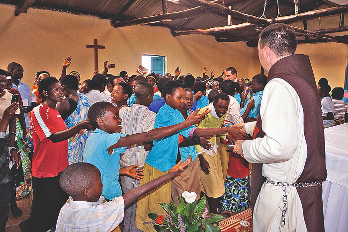 As Missas diárias do pároco de Rango, padre Gaspar Nteziryayo, SDB, são muito concorridas, especialmente por crianças e jovens. Logo após a Missa celebrada no dia da missão, eles rodearam os arautos do Evangelho, pedindo medalhas e estampas e fazendo-lhes mil perguntas sobre o carisma dessa Instituição eclesial.
