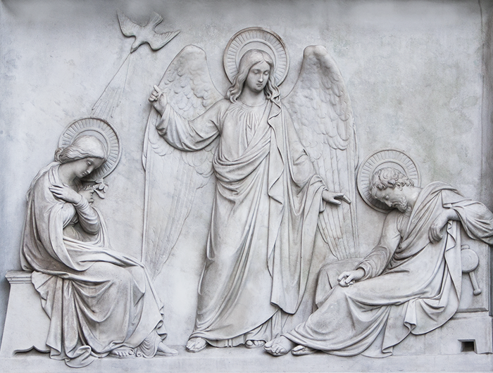 22Tudo isso aconteceu para se cumprir o que o Senhor havia dito pelo profeta: 23“Eis que a Virgem conceberá e dará à luz um Filho. Ele será chamado pelo nome de Emanuel, que significa: Deus está conosco”. 24Quando acordou, José fez conforme o Anjo do Senhor havia mandado: e aceitou sua Esposa. 25E sem ter relações com Ela, Maria deu à luz um Filho. E José deu ao Menino o nome de Jesus (Mt 1, 1-25).
