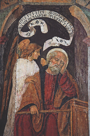 Já determinado a partir, transido de dor, recebeu de um Anjo a revelação: o fruto de Maria Santíssima era o próprio Deus feito Homem, e Ela seria Mãe sem deixar de ser Virgem!