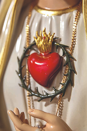 Em umas, encontra-se com as mãos postas, em atitude de oração; em outras, Maria Santíssima mostra seu Imaculado Coração rodeado de espinhos, enquanto seu nobre porte e delicado gesto parecem nos perguntar: “Meu filho, veja como sua Mãe sofre pelos pecados da humanidade. Você não quer vir Me consolar?”