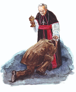 Lançou-se aos pés de Dom Matias, que portava o cibório na procissão, e ali se acusou de seu crime. Suas lágrimas eram de amor e adoração por Aquele a quem quisera destruir e que em sua infinita bondade o convertera.