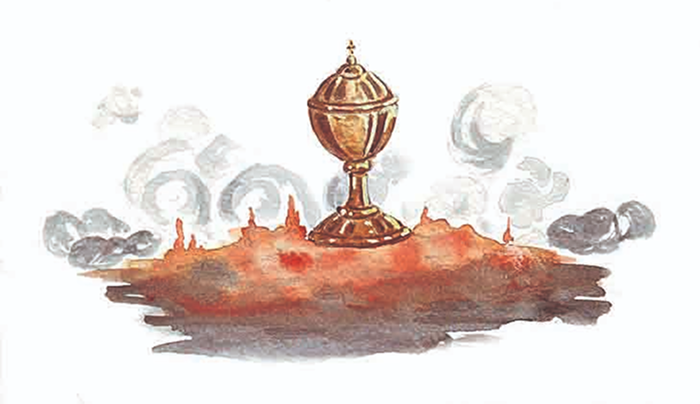 As chamas começaram tímidas e foram crescendo, crescendo, até tornarem-se grandes labaredas. Queimaram a mesa do altar, a toalha de linho e com volúpia se avolumaram sobre o sacrário…