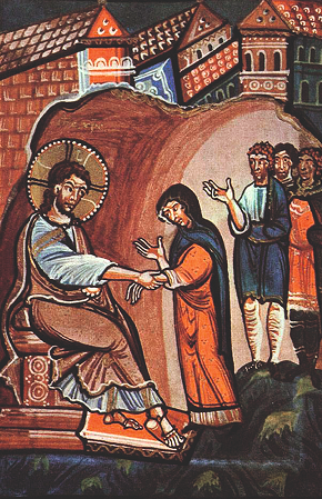 Nosso Senhor, contudo, permite ser assistido por esta senhora, para dar a entender que trazia costumes sociais inéditos. Homem-Deus, Ele vinha marchando contra a corrente e invertendo a mentalidade arrogante e vexatória que reinava, não só em Israel, mas também entre os gregos, romanos e demais povos.