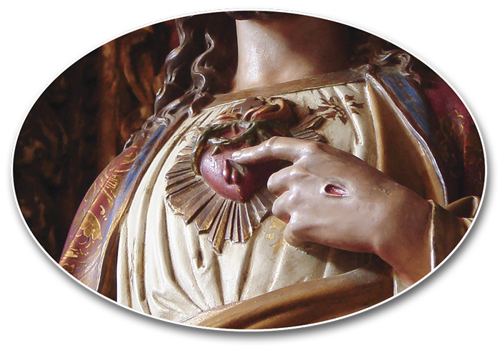Via-O em pé, muito nobre e com um sorriso ligeiramente triste, mas imensamente convidativo, tocando com a mão no Coração e olhando para quem estava embaixo, como se dissesse: “Queres um lugar aqui dentro? Não Me aceitas? Olha que tesouro! Isto é para ti!”