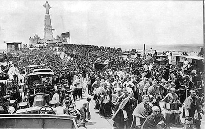 Ali cantávamos, rezávamos, inventávamos ladainhas de desagravo, etc. Enquanto isso, ela observava com binóculos o monumento. Viam-se perfeitamente os intentos de destruí-lo com explosões de dinamite.