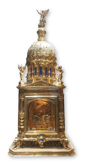 Neste local houvera uma aparição de São Miguel em 492, da qual se conservaram duas milagrosas recordações: o mármore do chão, que guardou as pegadas do Anjo, e uma capa vermelha, deixada pelo celeste visitante.