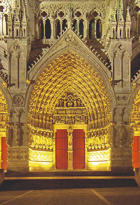 Pouco abaixo, deparamo-nos com um sublime paradoxo: o mesmo Deus que julga com olhar terrível desde o alto do tímpano, está ali de pé, sereno, bondoso, próximo a nós. É le Beau Dieu d’Amiens: o Belo Deus da cidade de Amiens.