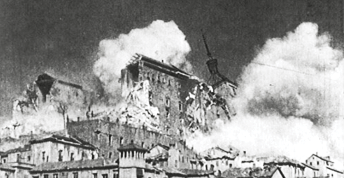 Às seis e meia da manhã as minas explodiram. Uma imensa nuvem negra elevou-se ao céu toledano. Torres derrubadas, paredes demolidas, fumaça…