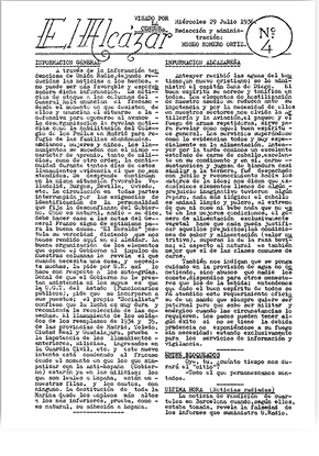 Desde os primeiros dias do cerco, Moscardó havia mandado escrever um pequeno “jornal”, que fizesse circular de forma periódica as notícias externas e internas da fortaleza.