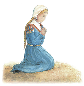 Abençoando-a, encomendou-a a uma caravana de bons aldeões com os quais partiu.
