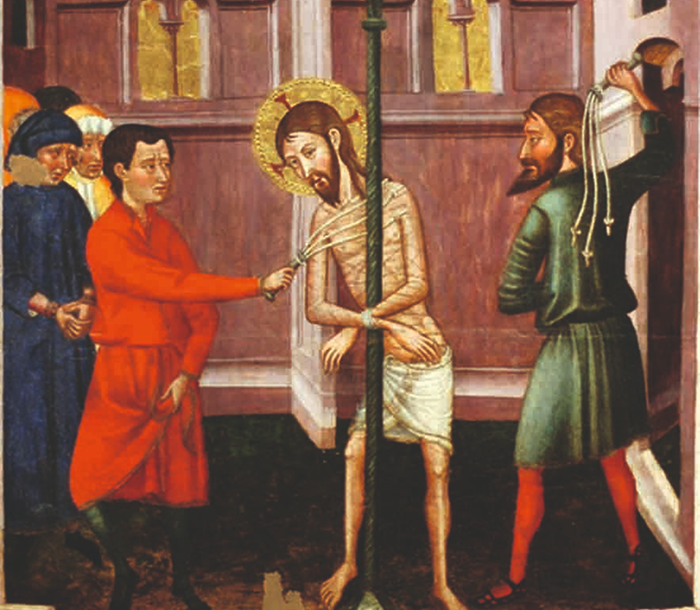Ao ouvir esta ameaça, a pouca coragem de Pilatos desmoronou, e ele lhes entregou o Inocente para ser crucificado.