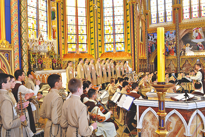 Assim, através do canto gregoriano, da polifonia sacra e da harmonização instrumental, os jovens estudantes Arautos do Evangelho buscam aprimorar o quanto possível sua formação intelectual e, sobretudo, aprofundar cada vez mais a real e verdadeira forma de oração, que consiste em elevar a mente a Deus.
