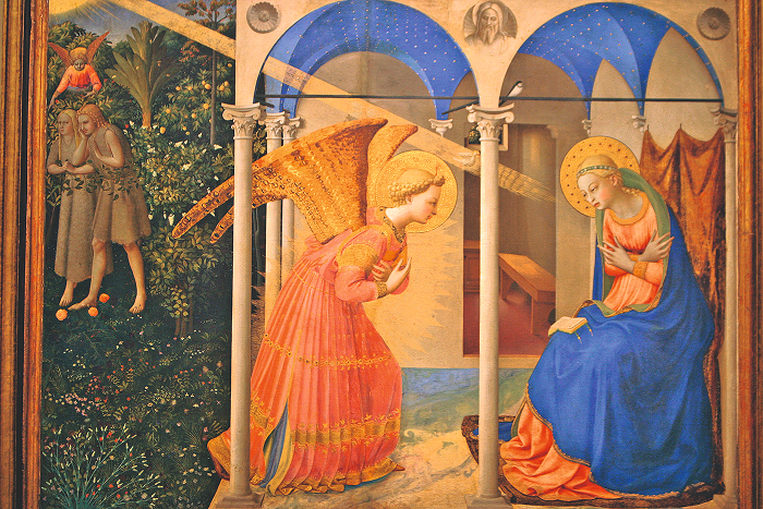 A expressão “o Anjo entrou” é sinal de que Maria estava recolhida em sua casa, e decerto rezava. O que disse o Anjo? “Alegra-Te, cheia de graça, o Senhor está contigo!”.