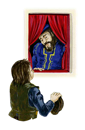 A princípio envergonhado por suas pobres e sujas roupas, o menino foi se esquecendo de sua miserável condição. Tão bondoso era o rei, e tão à vontade o deixara que sua atenção estava completamente voltada para o grande soberano.