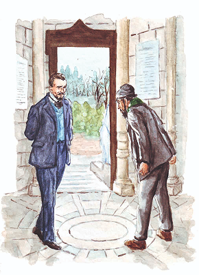 Surpreso, o desconhecido voltou-se… Oh decepção! Em lugar do turbante, usava um gorro cinza escuro; em lugar de roupagens suntuosas, vestes rasgadas.