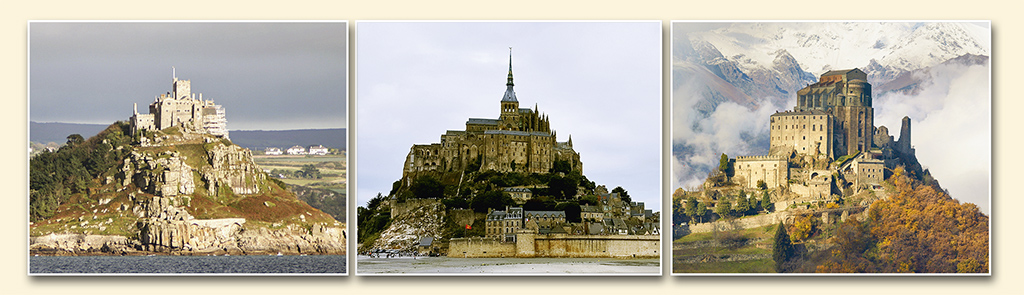 Após atravessar o Canal da Mancha, chegamos à famosíssima Abadia do Mont Saint-Michel, local da aparição ao Bispo de Avranches, Santo Autberto. De lá avançamos até uma grande rocha que domina o Piemonte, do outro lado dos Alpes, sobre a qual se ergue a Sacra di San Michele, antiquíssimo mosteiro dedicado ao Custódio da Igreja. E ainda dentro do território italiano, mas já nas margens do Adriático, está o Santuário do Monte Gargano.