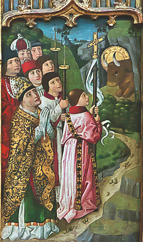 Entrai nela, orai assiduamente no seu interior, assistidos por mim, seu padroeiro. E, quando sejam celebradas Missas, que o povo comungue conforme o costume. Eu mesmo me encarregarei de santificar este lugar.4
