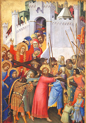 Com majestoso silêncio, o Salvador suportou a flagelação, as injúrias da coroação de espinhos (cf. Mt 27, 26-31; Mc 15, 15-20; Jo 19, 1-5) e subiu ao Gólgota com a Cruz às costas. Tão pesada era – o peso de nossos pecados! – que, a meio caminho, obrigaram Simão de Cirene a ajudá-Lo a carregar tão ignominioso fardo.